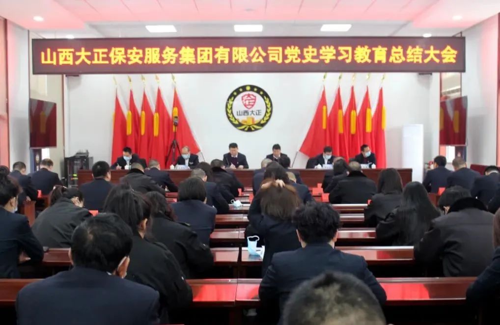 2022年1月24日上午,山西大正保安服務(wù)集團(tuán)有限公司召開黨史學(xué)習(xí)教育總結(jié)大會(huì)。會(huì)議深入貫徹落實(shí)習(xí)近平總書記重要指示精神和黨史學(xué)習(xí)教育總結(jié)會(huì)議精神,全面總結(jié)了一年來公司黨史學(xué)習(xí)教育工作開展情況,并對(duì)公司今后進(jìn)一步拓展黨史學(xué)習(xí)教育成果做出了部署,指明了方向。集團(tuán)公司黨委副書記、總經(jīng)理趙培宏主持會(huì)議并作總結(jié)講話。黨委副書記、副總經(jīng)理陳志平出席會(huì)議并作公司黨史學(xué)習(xí)教育總結(jié)報(bào)告。公司領(lǐng)導(dǎo)班子成員、各單位、各分公司負(fù)責(zé)人、機(jī)關(guān)全體職工參加大會(huì)。