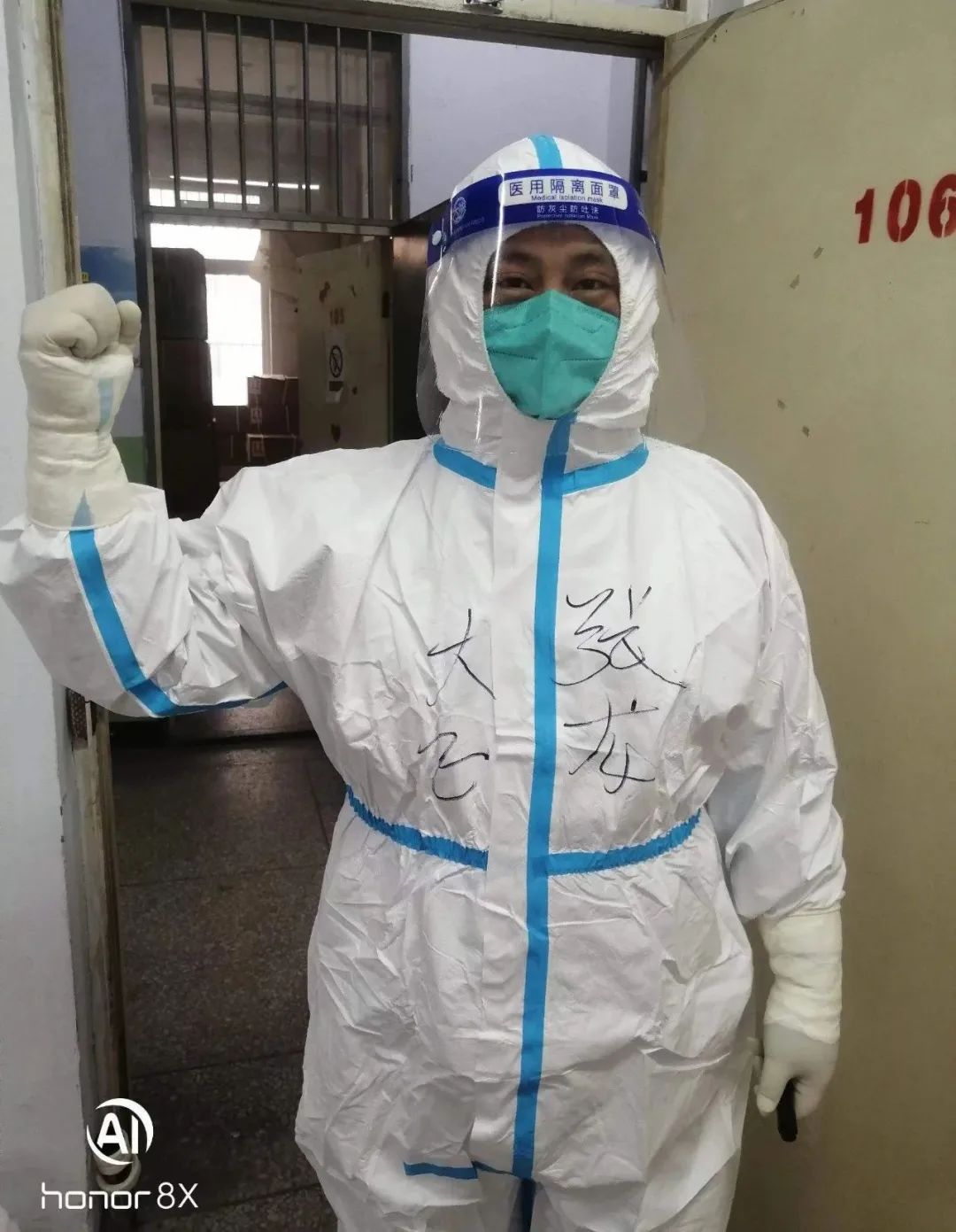 11月16日晚上6點(diǎn),是他們第一次穿著防護(hù)服進(jìn)入隔離區(qū)為隔離人員高風(fēng)險(xiǎn)近距離服務(wù)。關(guān)向宇同志身體高大肥胖,穿脫防護(hù)服要比常人艱難的多,為盡職責(zé)完成任務(wù),自己克服困難,知難而上,跨入隔離區(qū)。二人在隔離區(qū)服務(wù)近四個(gè)小時(shí),出來(lái)時(shí)滿身流著汗水,第二天兩人都發(fā)生了身體不適狀況,身體發(fā)冷、咳嗽等癥狀,但是他們沒(méi)有畏縮,提振精神,繼續(xù)馬不停蹄的干活,該干啥干啥,該做什做什,忙里又忙外。