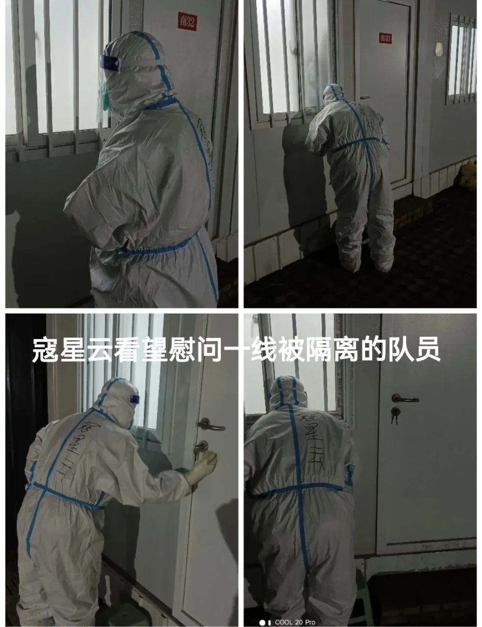 關(guān)心溫暖人心,關(guān)懷凝聚力量,領(lǐng)導(dǎo)的關(guān)心是對一線員工的最大安慰和精神鼓舞,組織的關(guān)懷是凝聚力量、激發(fā)斗志的不竭動力,不論是出征前的動員講話,還是送別隔離區(qū)一線隊員的鼓勵和問候,以及在微信群里的囑咐鼓勁,寇星云同志始終把大家的個人安危放在第一位,時刻叮囑隊員們必須做好自我防護(hù),確保自身安全,堅決杜絕內(nèi)部感染傳播,只有自己安全才能更好地服務(wù)病患、服務(wù)好隔離人員,才能高質(zhì)量、高標(biāo)準(zhǔn)完成我們的使命任務(wù),才是對家人、對社會的真正負(fù)責(zé)。他鼓勵大家發(fā)揮守押隊伍能征善戰(zhàn)、沖鋒陷陣、挑戰(zhàn)自我,苦干實干的優(yōu)良作風(fēng),堅定抗疫有我、戰(zhàn)疫必勝、疫情不散、堅守陣地的信心和決心。對在工作中因勞累過度、身體受傷、出現(xiàn)不適的隊員更是關(guān)心備至、體貼入微,親自看望受傷隊員田振華,關(guān)心照顧因低血糖暈倒在一線的隊員吳彩霞,慰問在隔離宿舍和方艙隔離區(qū)因勞累過度出現(xiàn)身體不適的13名隊員,給他們送去生活用品,并和他們進(jìn)行親切地交談,帶去組織的關(guān)懷,領(lǐng)導(dǎo)的關(guān)心,凝聚人心,鼓舞士氣。