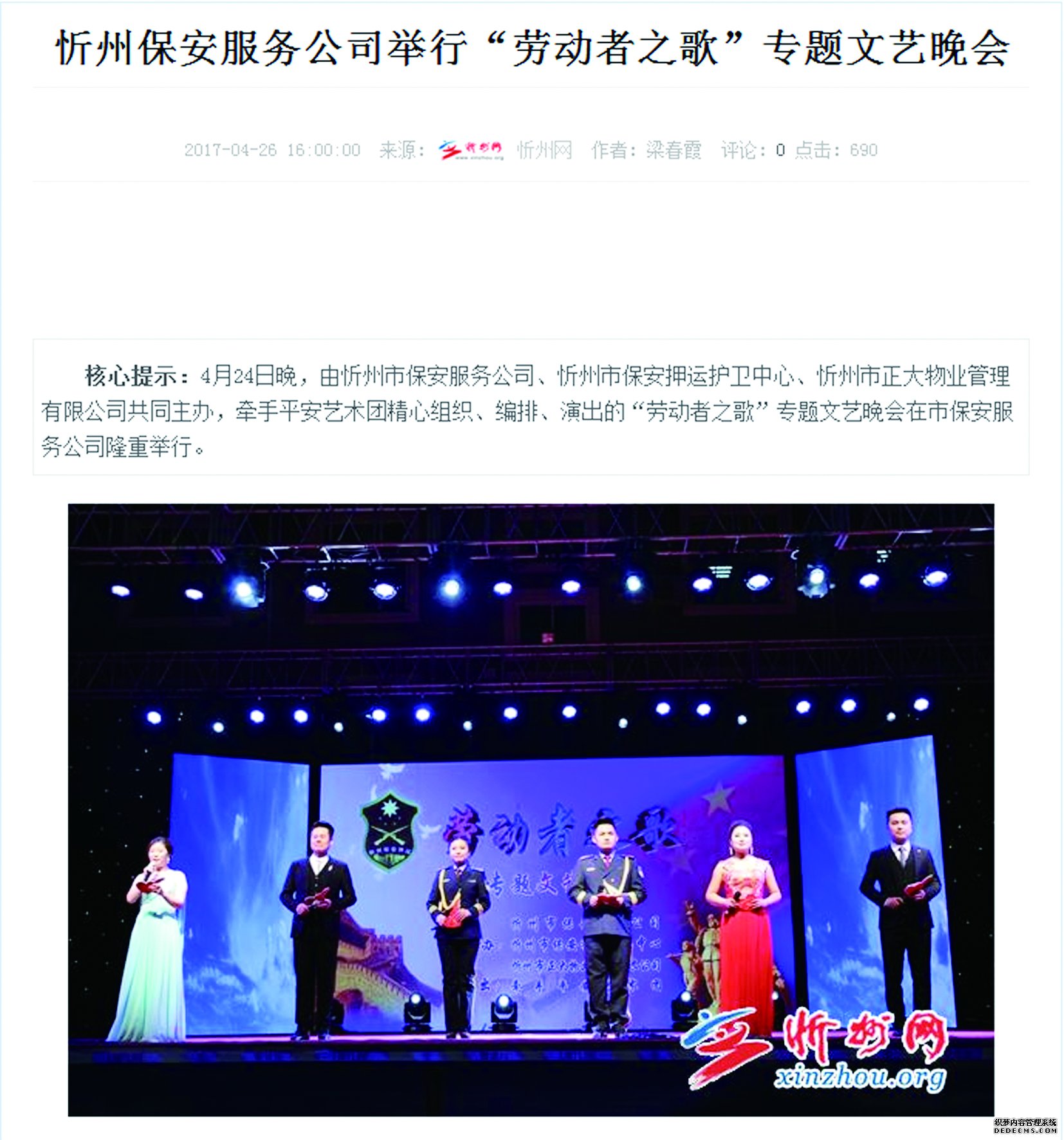 值“五一”國際勞動節(jié)、“五四”青年節(jié)來臨之際,我公司成功舉辦“慶五一·迎五四”系列文體活動。在公司西區(qū)大院舉行“勞動者之歌”專題文藝晚會。舉辦這次活動為進一步豐富員工文化生活、促進溝通交流、增強團隊凝聚力,提高廣大員工的歸屬感和主人翁意識,打造和諧共贏的企業(yè)文化,樹立企業(yè)良好的社會形象。向長期以來關心、支持公司事業(yè)發(fā)展的社會各界人士表示衷心的感謝。節(jié)目內容包括舞蹈、配樂詩朗誦、制式服裝秀、歌曲、小品、曲藝、戲曲等。異彩紛呈的節(jié)目博得觀眾陣陣掌聲,吸引了眾多市民駐足欣賞。