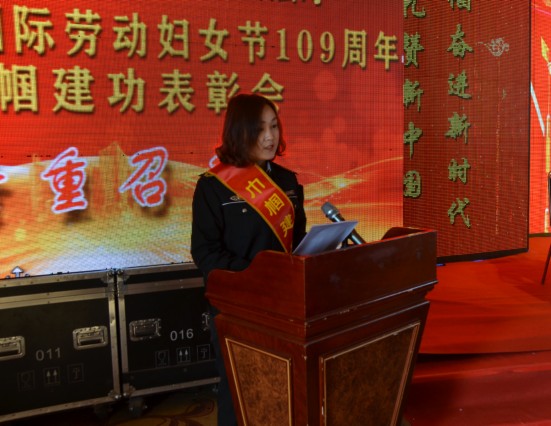 3月7日,公司在漢鼎國(guó)際酒店八樓會(huì)議廳,隆重召開(kāi)紀(jì)念“三八”國(guó)際勞動(dòng)?jì)D女節(jié)109周年暨巾幗建功表彰大會(huì)。市總工會(huì)黨組成員、經(jīng)審委主任崔曉君、市婦聯(lián)黨組成員、副主席郭梅榮應(yīng)邀出席大會(huì)。會(huì)議由公司黨委委員、副總經(jīng)理王明生主持,公司黨政領(lǐng)導(dǎo)班子成員、受表彰的先進(jìn)集體和個(gè)人代表、城區(qū)婦女職工代表共兩百余人出席表彰大會(huì)。