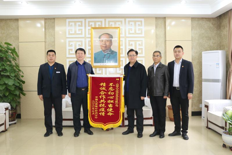 趙培宏代表公司感謝工行忻州分行對我方守押工作的肯定,表示為客戶單位提供優(yōu)質(zhì)服務(wù)是公司職責(zé)所在,工行忻州分行贈送錦旗,極大地鼓舞了公司干部員工的工作熱情。今后,公司將進(jìn)一步提升服務(wù)意識和服務(wù)質(zhì)量,用實際行動來踐行責(zé)任與擔(dān)當(dāng),以更優(yōu)質(zhì)的服務(wù)、更專業(yè)的水平滿足客戶需求,一同抗擊疫情,更好的為忻州經(jīng)濟(jì)社會建設(shè)服務(wù)。