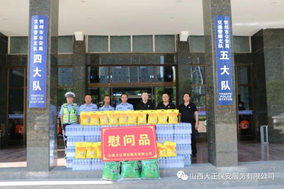 6月3日,山西大正保安服務(wù)(集團)有限公司河曲中隊代理中隊長霍健,帶領(lǐng)中隊隊員代表公司慰問了河曲縣公安局交通警察大隊,為奮斗在交通指揮一線的縣交警大隊民警送去防暑降溫慰問品。將關(guān)愛送到一線,把清涼送到一線,確保一線交通干警同志們度過一個安全、衛(wèi)生、清涼的夏季。感謝一線交警不畏烈日、日夜堅守崗位,確保了城區(qū)干道交通暢通、人民出行安全,營造了良好的道路交通環(huán)境。交警大隊副隊長李強接受了慰問,并表示:“有了企業(yè)的關(guān)愛及社會各界的理解和支持,讓交警感受到了無盡的清涼。全體民輔警將繼續(xù)發(fā)揚‘能吃苦、能戰(zhàn)斗、能奉獻’的優(yōu)良作風(fēng),以更加飽滿的工作熱情投入工作中,以實際行動回報社會各界的關(guān)愛。”