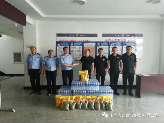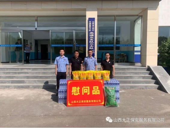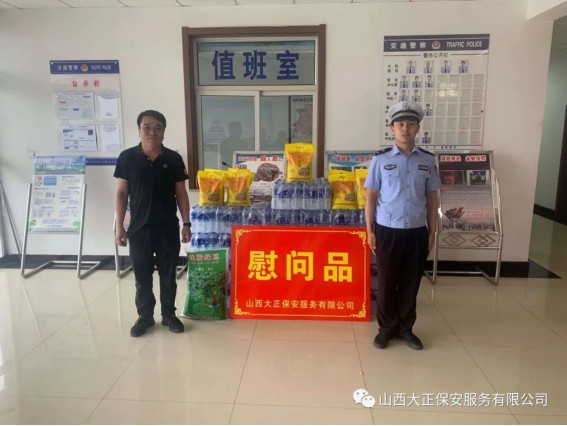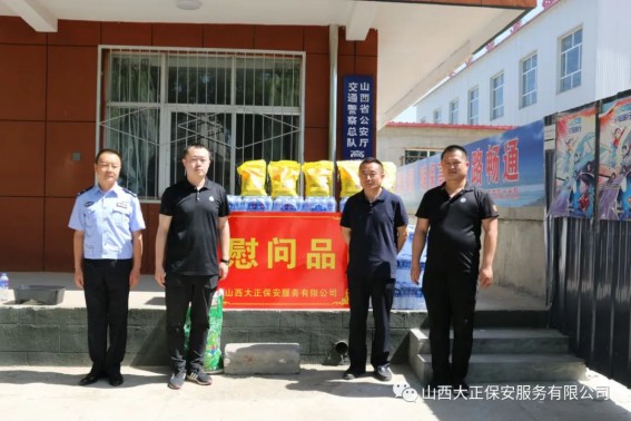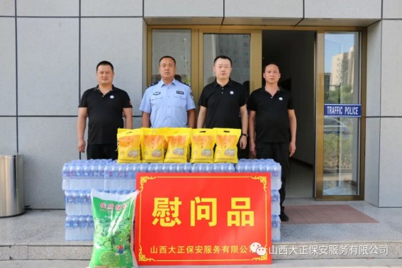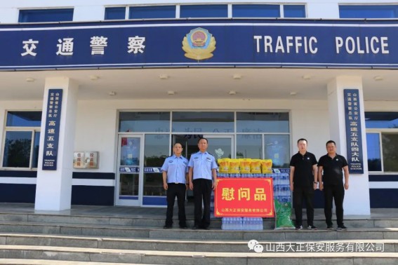 5月以來,山西大正保安服務(wù)(集團)有限公司為切實搞好此次“警民攜手 共建平安”慰問交警活動,公司黨委、董事會代表全體職工對交警同志在高溫天氣下為道路交通安全所付出的辛勤勞動表示贊揚。集團公司裝備保障中心工作人員攜守押一公司多名中隊長對城區(qū)13個交警單位進行了送清涼上門慰問。公司委派駐各市、縣共19個守押中隊,在當(dāng)?shù)剡M行了上門慰問交警活動。累計上門慰問交警大隊27個,交警中隊7個。送出礦泉水950件、小米340袋、綠豆340袋。同時,公司號召全體職工積極配合交警工作,行車中嚴(yán)格遵守道路交通安全法,積極服從交警指揮,做到安全駕駛,文明行車。