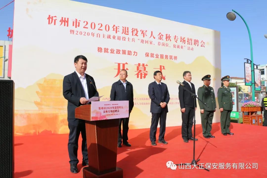 10月21日,由山西省退役軍人事務(wù)廳、山西省人力資源和社會(huì)保障廳、山西省軍區(qū)政治工作局主辦,忻州市退役軍人事務(wù)局、忻州市人力資源和社會(huì)保障局、山西省忻州軍分區(qū)承辦的忻州市2020年退役軍人金秋專場(chǎng)招聘會(huì)于忻州體育廣場(chǎng)舉行,活動(dòng)以“穩(wěn)就業(yè)政策助力,保就業(yè)服務(wù)筑橋”為主題。山西大正保安服務(wù)集團(tuán)有限公司總經(jīng)理趙培宏作為參會(huì)企業(yè)代表上臺(tái)發(fā)言,集團(tuán)公司人力資源中心工作人員在現(xiàn)場(chǎng)開(kāi)展招聘活動(dòng)。