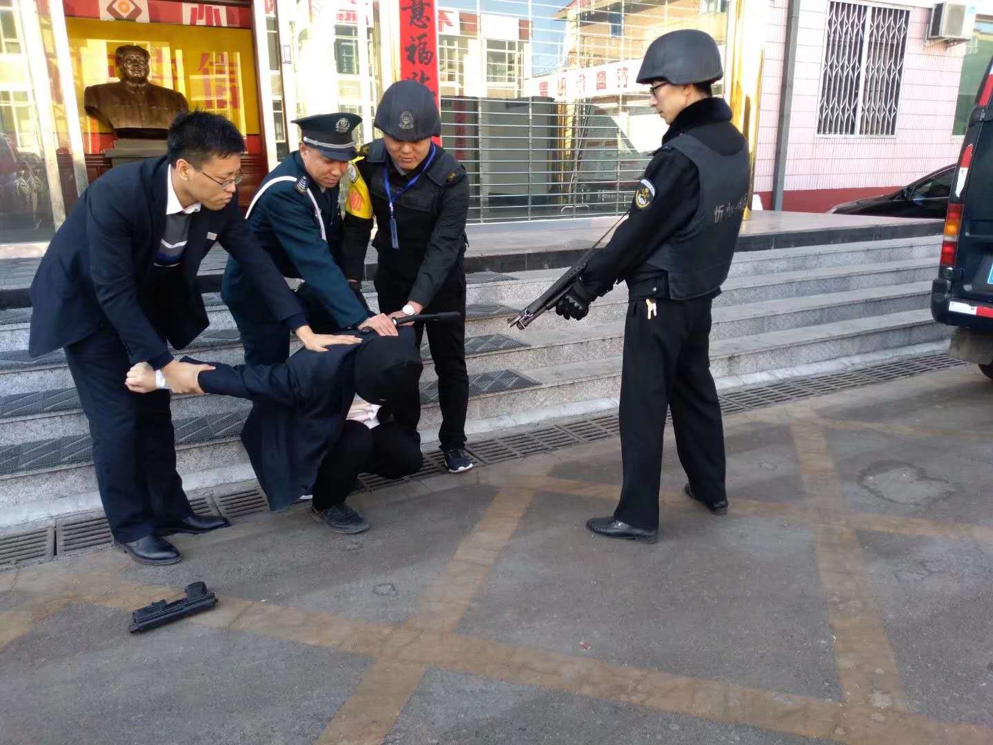 為創(chuàng)建安全、穩(wěn)定的金融武裝押運(yùn)環(huán)境,3月15日上午,守押五寨中隊(duì)一號(hào)車(chē)組成員組織開(kāi)展了武裝押運(yùn)反恐防搶演練。